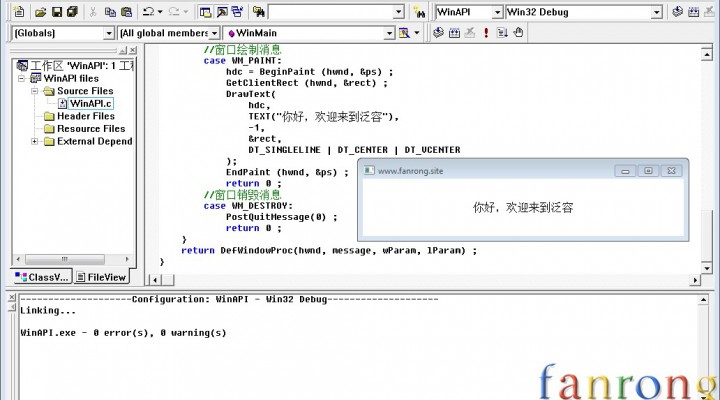 有了代码模板,剩下的主要工作就是处理各种各样的事件了,也就是在窗口过程中编写代码。
